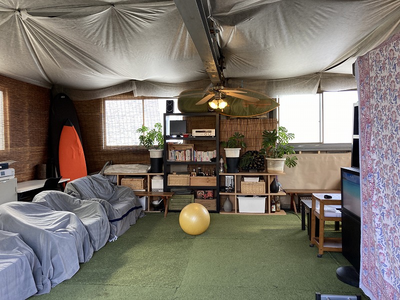 倉庫スペースの2階を改装したリラックスルームです。窓から見える桜の木の木漏れ日が心地よい空間です。撮影日はご相談下さい。 |
